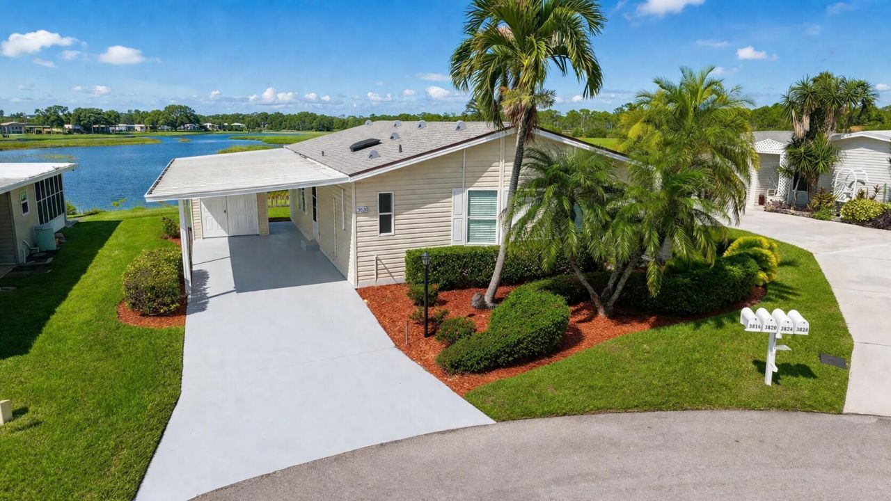 TURN-KEY FULLY RENOVATED WATERFRONT HOME WITH NEW 2025 ROOF AND MAJOR UPGRADES COMPLETED. Beautiful 2BR/2BA with an open layout connecting the living, dining, and kitchen areas to an enclosed lanai, offering water views throughout. Truly move-in ready with luxury vinyl flooring, smooth walls and ceilings (no paneling), fresh interior paint, stainless steel appliances, washer and dryer, new vapor barrier and tie-downs, and an enclosed lanai with A/C. Major systems already completed, minimizing future repair concerns and eliminating the need for immediate renovations. The overall condition stands out compared to most homes currently available in Savanna Club. Located in an active 55+ community with multiple clubhouses. Conveniently located near beaches, shopping, and medical facilities. Golf cart included plus outdoor lanai furniture and BBQ. Modern fans and fixtures throughout. Oversized storage shed and sprinkler system on well water. Enclosed lanai offers a private setting ideal for relaxing or entertaining. Savanna Club features three clubhouses, swimming pools, fitness centers, tennis courts, golf, on-site dining, live entertainment, and social events. Optional RV and boat storage available. HOA includes cable, internet, trash removal, and full access to amenities. Easy to show.